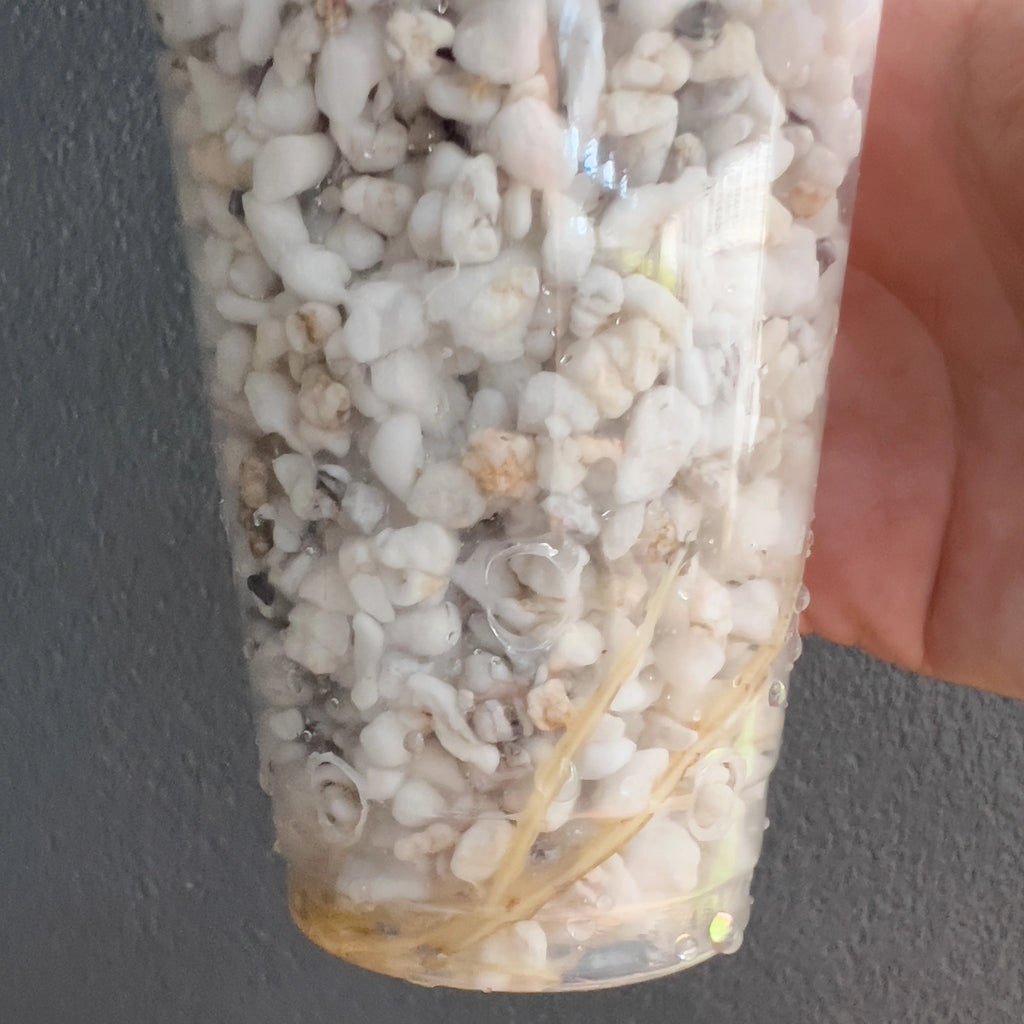 Plants grown in perlite are shipped in their inner containers. The reservoir is emptied before packing to keep the plant secure. Please refill the outer cup with fresh water and your usual CCS, Flower Focus, or Foliage Focus mix once it arrives.