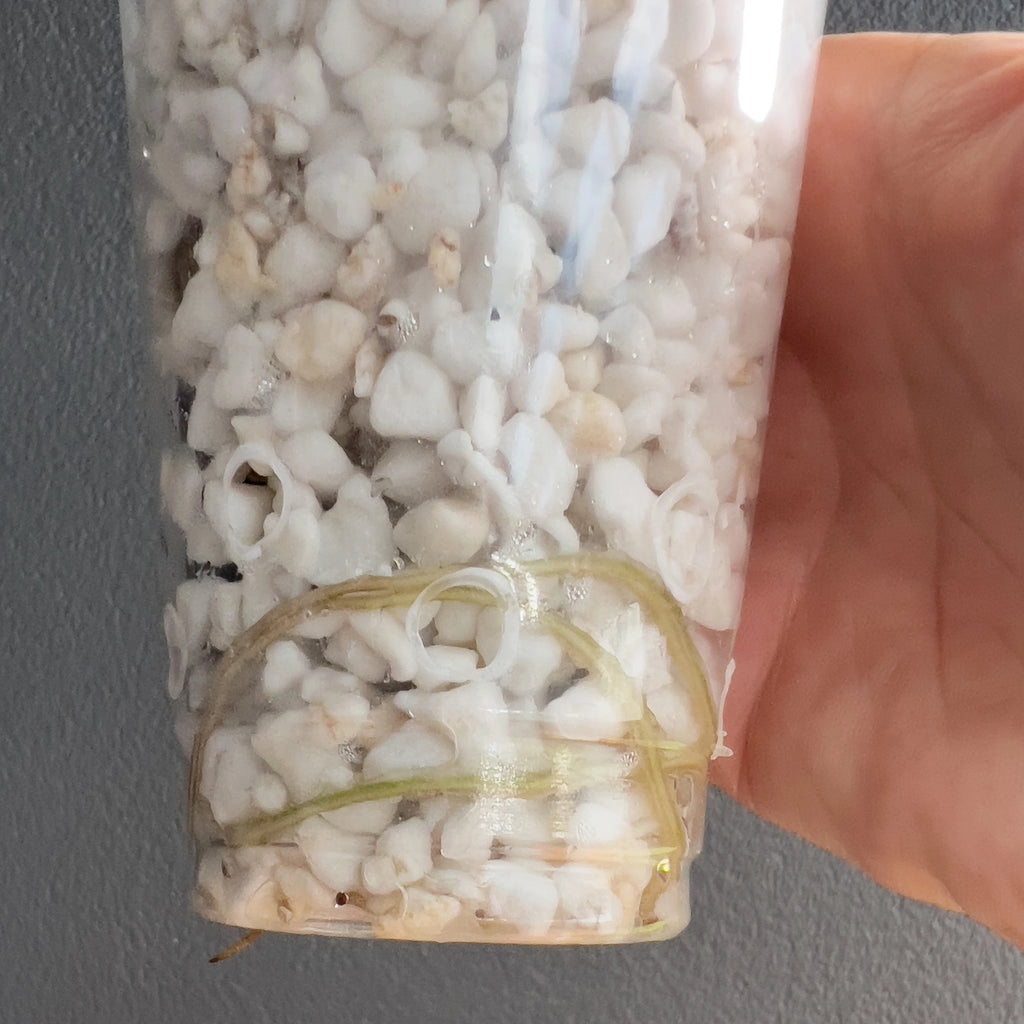Plants grown in perlite are shipped in their inner containers. The reservoir is emptied before packing to keep the plant secure. Please refill the outer cup with fresh water and your CCS or Foliage Focus mix once it arrives.