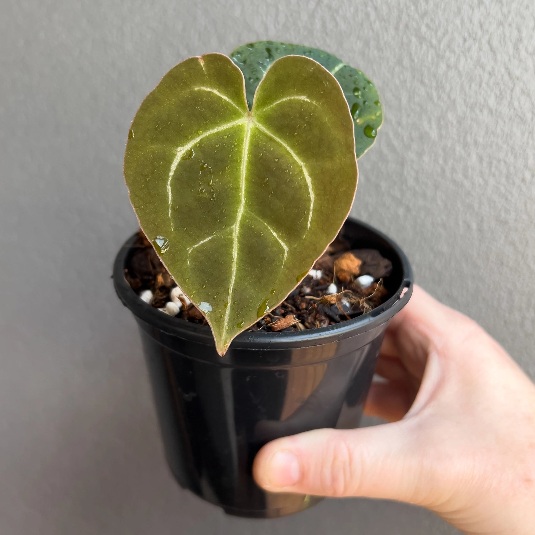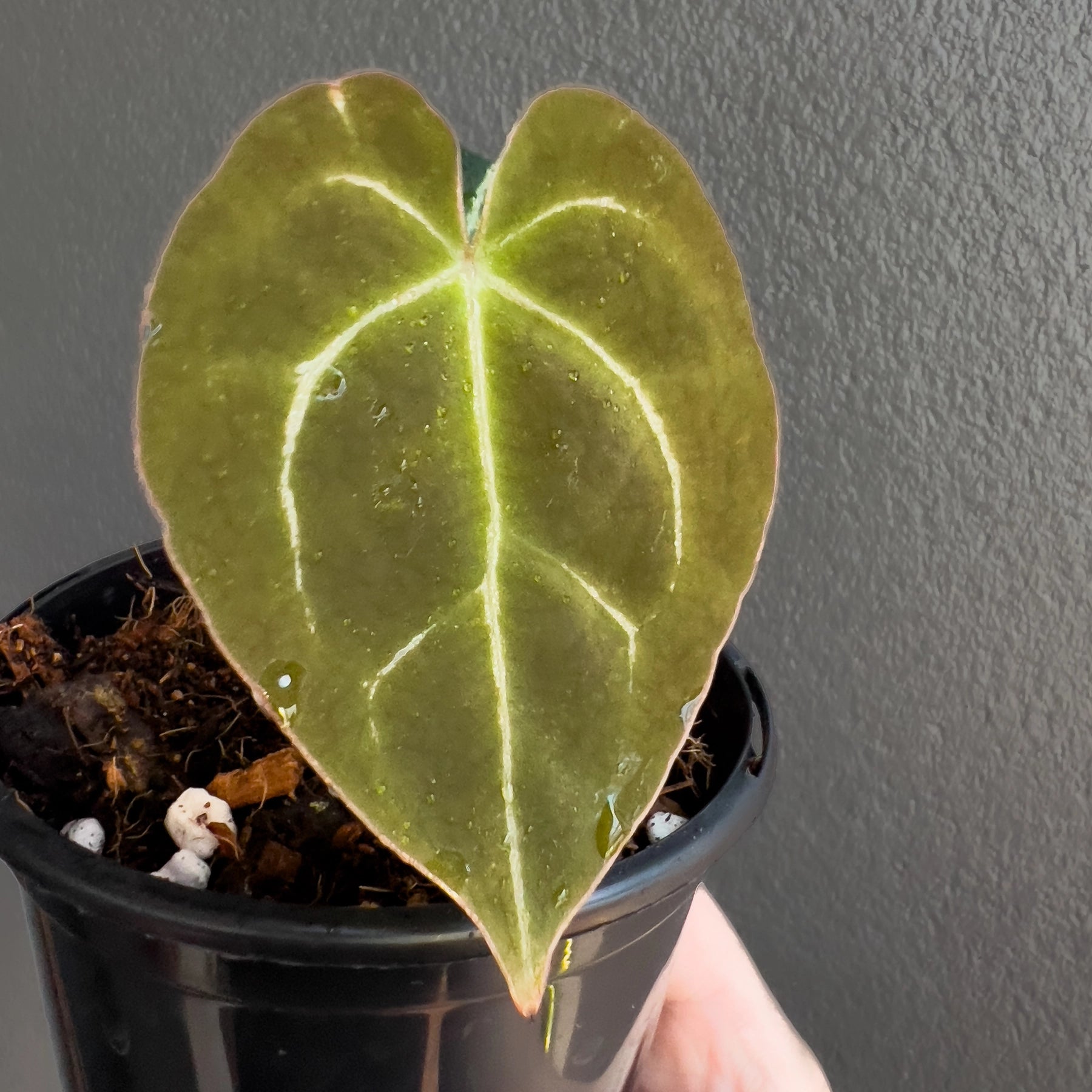 The Anthurium forgetii x 'Dark Forgetii' Hybrid has a gorgeous blend and qualities of an Anthurium forgetii hybrid with the rich, deep colouring of an Anturium dark forgetii. Expect round, velvety leaves, with foliage that may show deeper greens, a softer sheen, and slight variation in form thanks to the hybrid parentage. Thrives in indirect light and enjoys moderate to high humidity. A rare and beautiful addition for serious collectors who love unique forgetii forms.