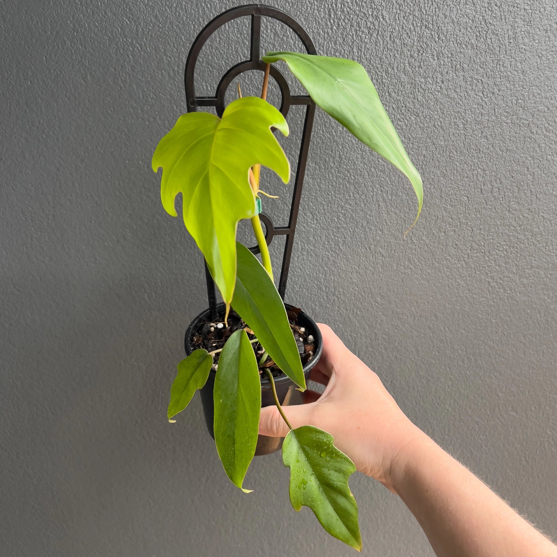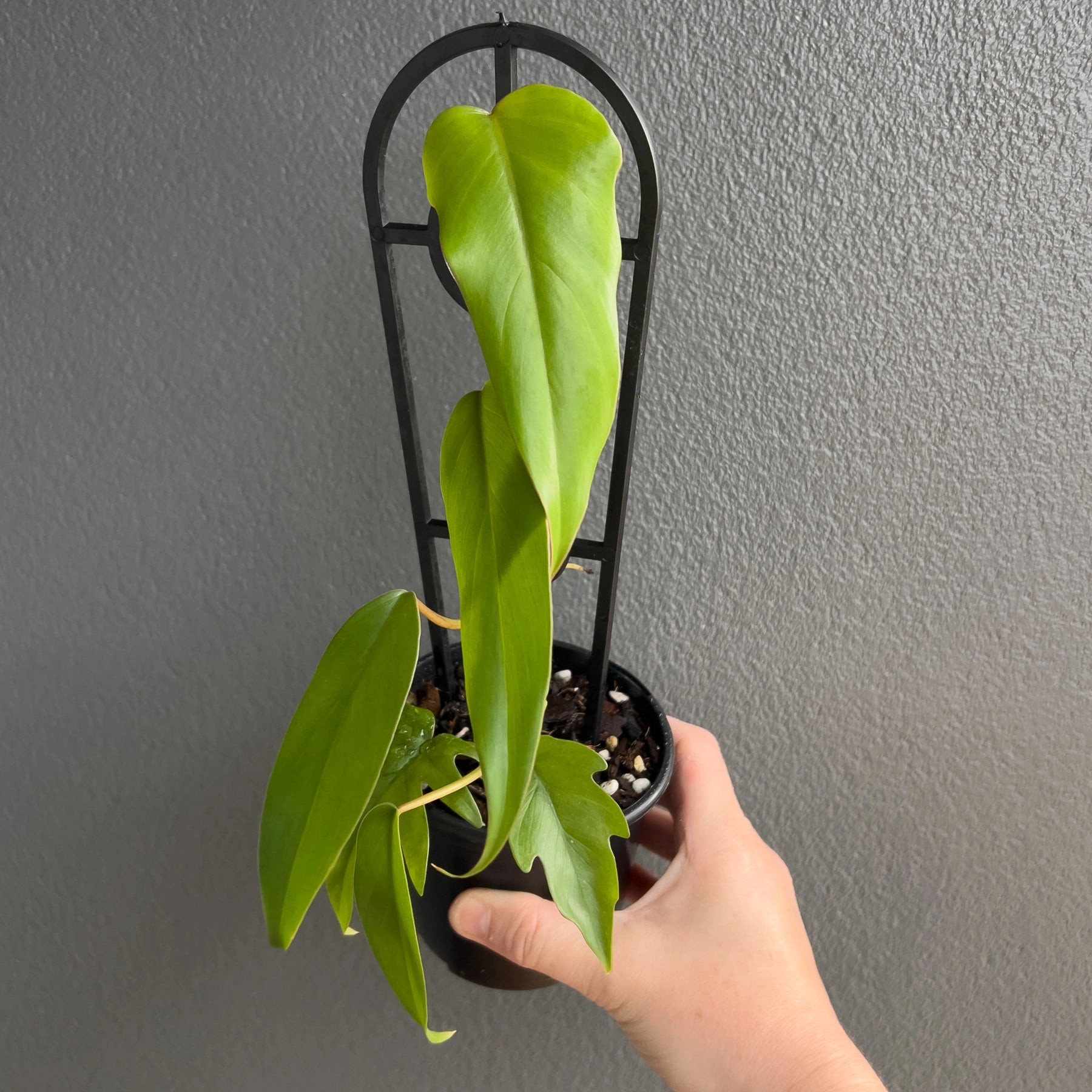 Philodendron mayoi is a highly sought-after tropical plant from the rainforests of Brazil. It was named in honour of Dr. Simon Mayo, an aroid botanist who dedicated his career to Brazilian Philodendrons. It stands out from other Philodendron varieties with its large, palm-like leaves, red petioles, and underside veins. As it matures, the glossy green lobes become bigger and wider, making it a dramatic large floor specimen. These are true Philodendron mayoi taken from stem cuttings and not to be mistaken for the Philodendron mayoi 'Tahiti'.