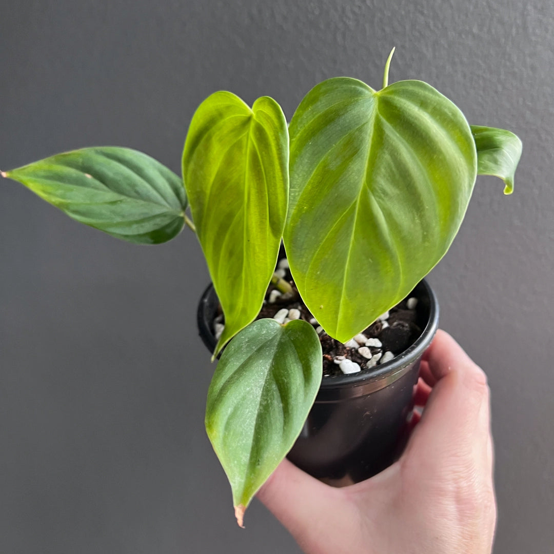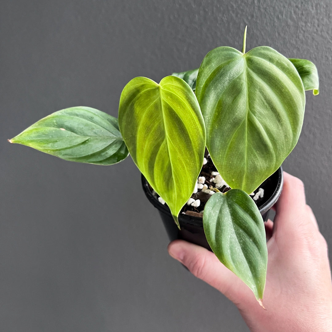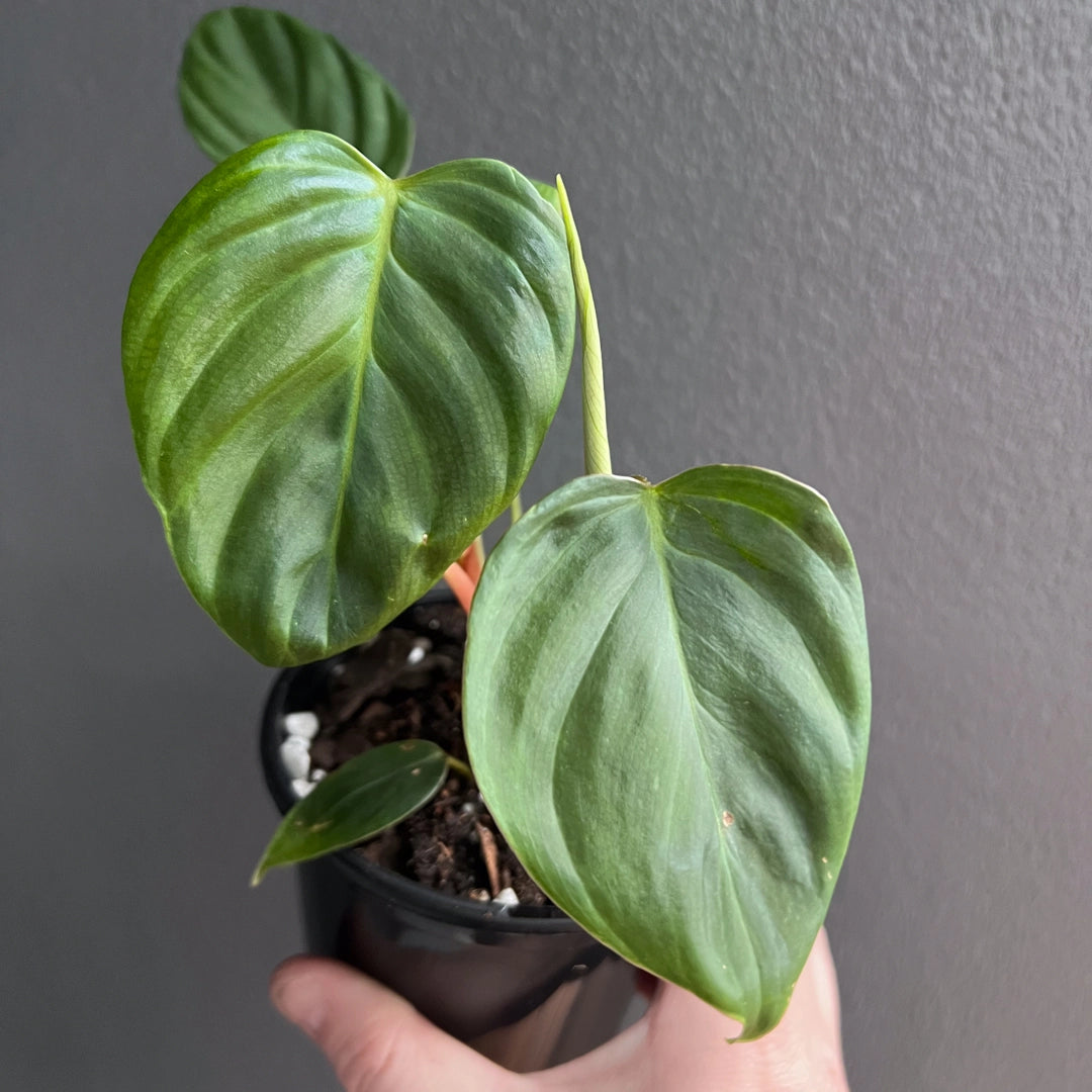 Philodendron nangaritense, commonly known as Philodendron Fuzzy Petiole, is a unique terrestrial species prized for its striking, bright green, heart-shaped leaves and distinctive fuzzy petioles. The new leaves emerge with a pinkish hue before hardening off to a vibrant green. The petioles are covered in soft, reddish fuzz, giving the plant a textured, almost velvety appearance. Unlike climbing Philodendrons, this species grows in a creeping, self-heading manner, spreading outward rather than vining.