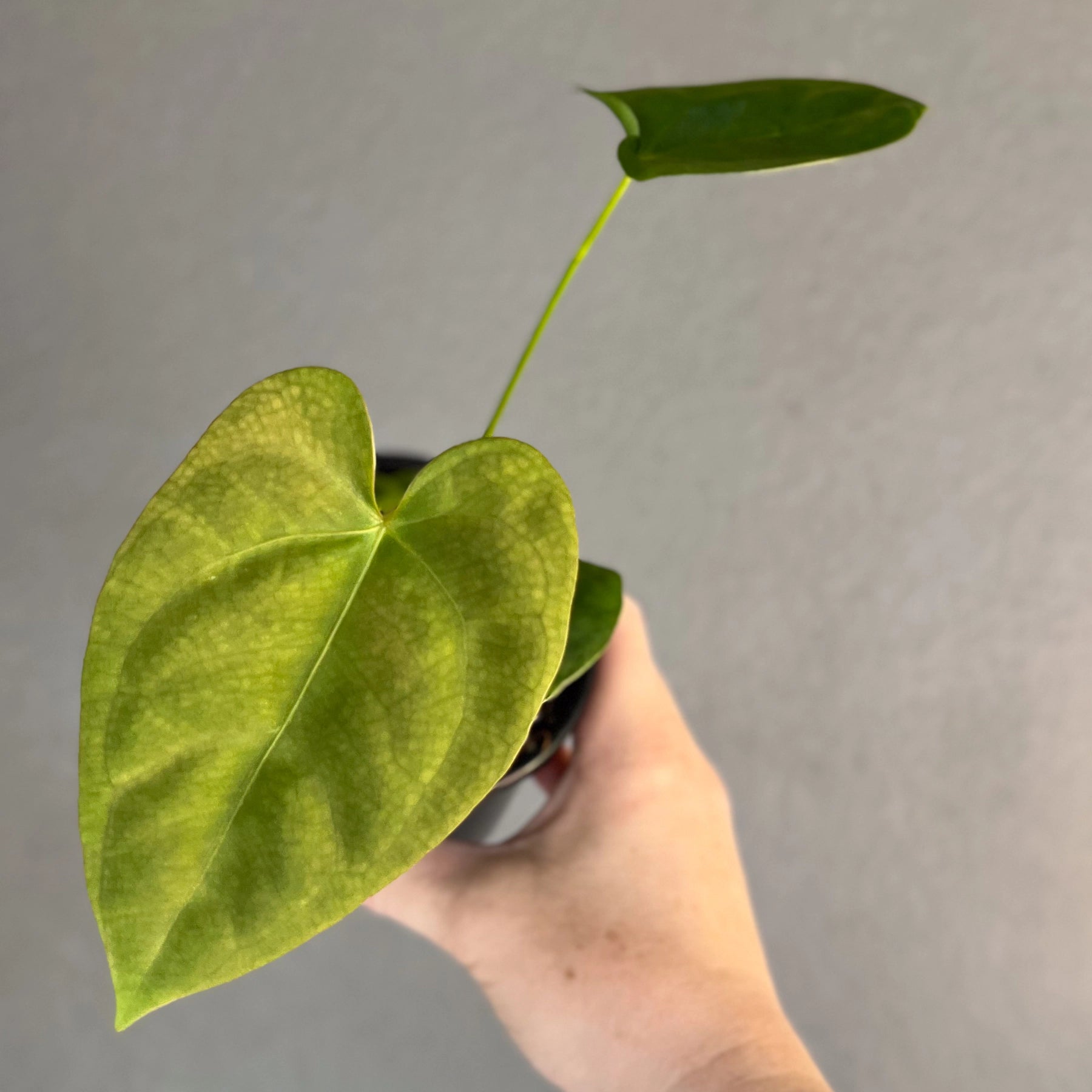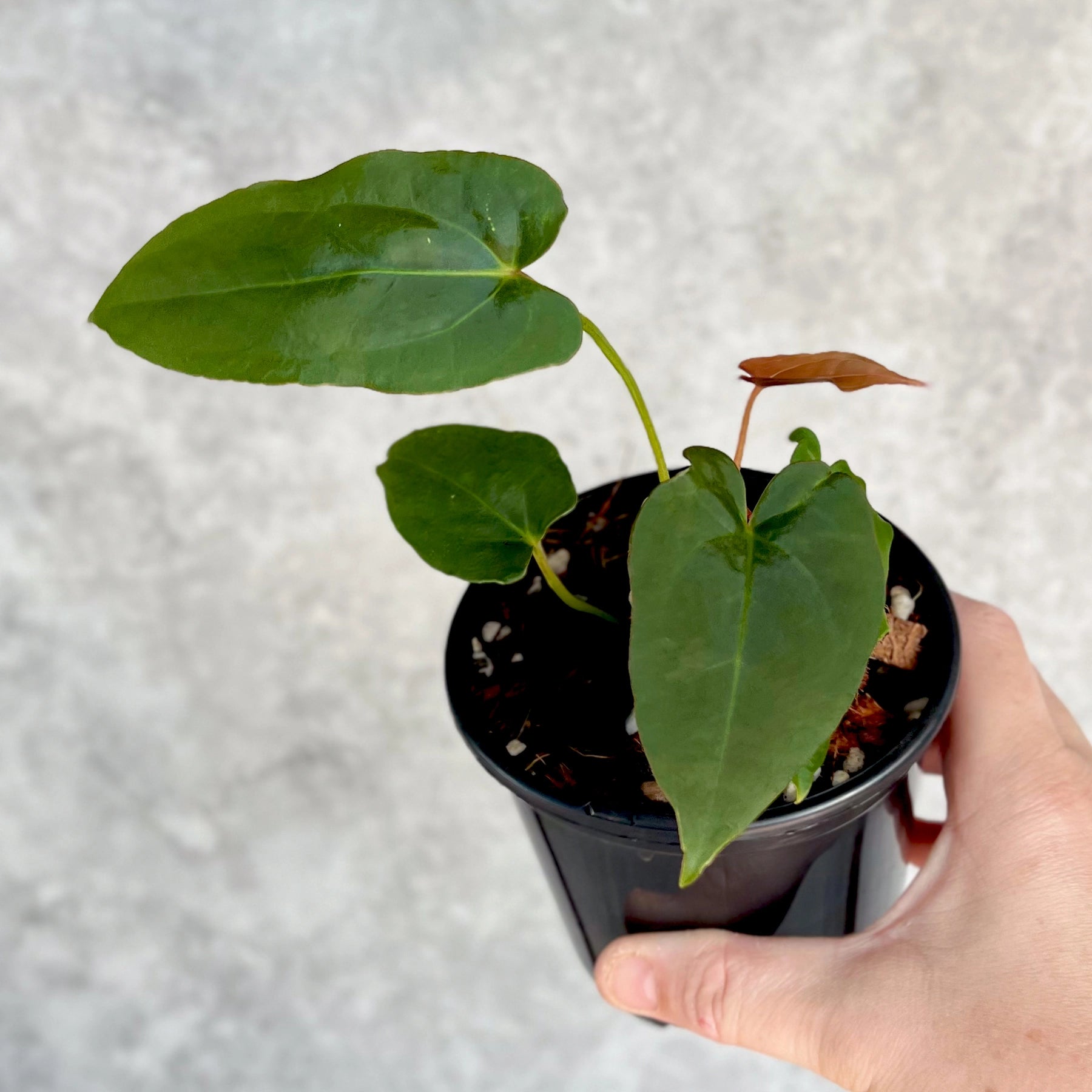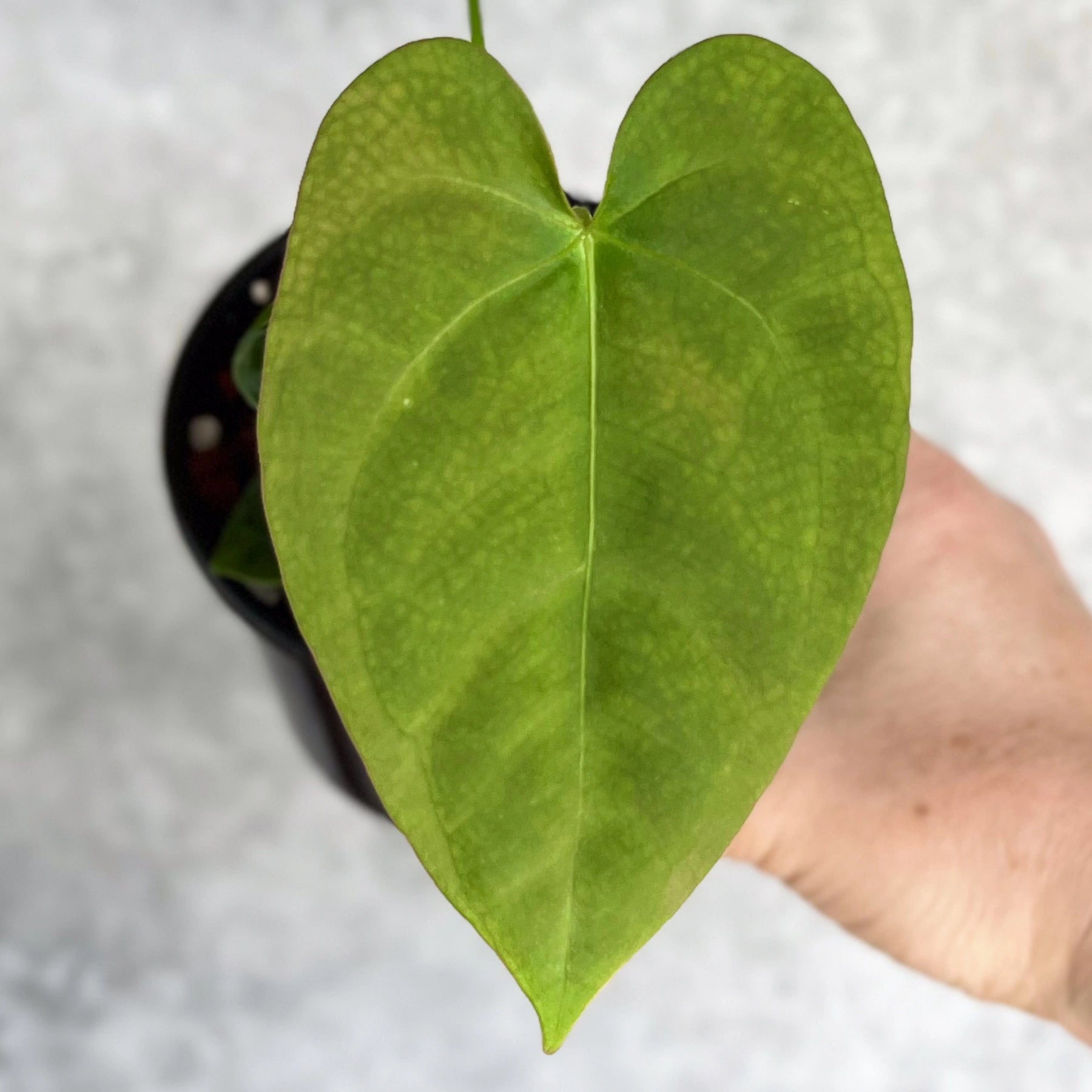 This Anthurium (dressleri × (luxurians ×) × open pollination) is a striking hybrid. Leaves emerge thick and glossy, then harden off into rich, dark green tones with subtle texture which might be inherited from its luxurians influence, while the Anthurium dressleri contributes structure, shape collectors love. Each plant will show its own character as it matures due to the open pollination parentage, making every plant a little different. Best suited to higher humidity. An excellent choice for collectors who appreciate texture, form, and genetic intrigue.