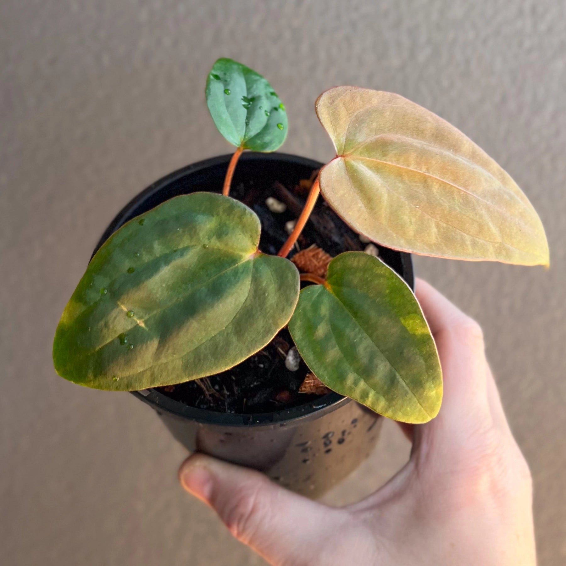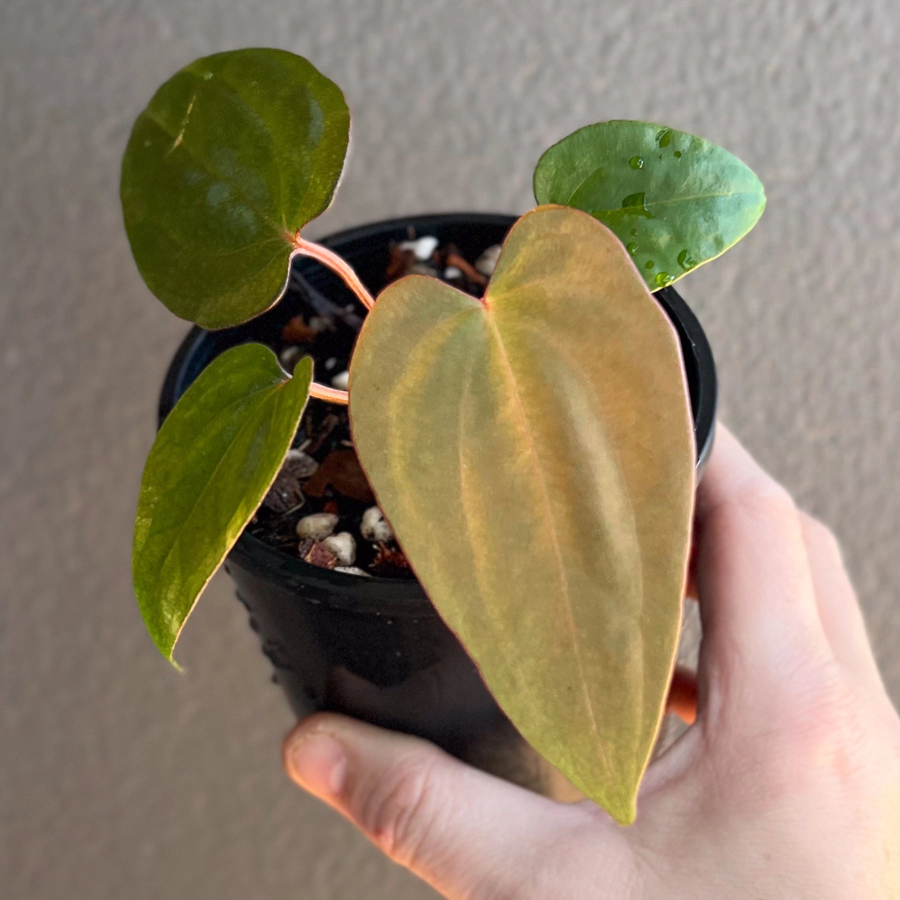 Anthurium ‘Swingers Party’ is a velvet hybrid grown from seed, combining Phoenix Gangbang with Papillilaminum x Dressleri.