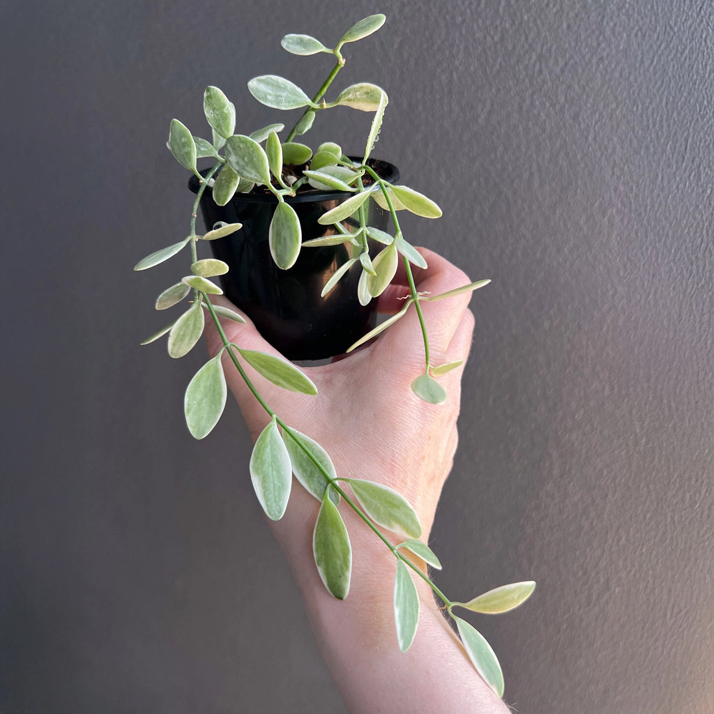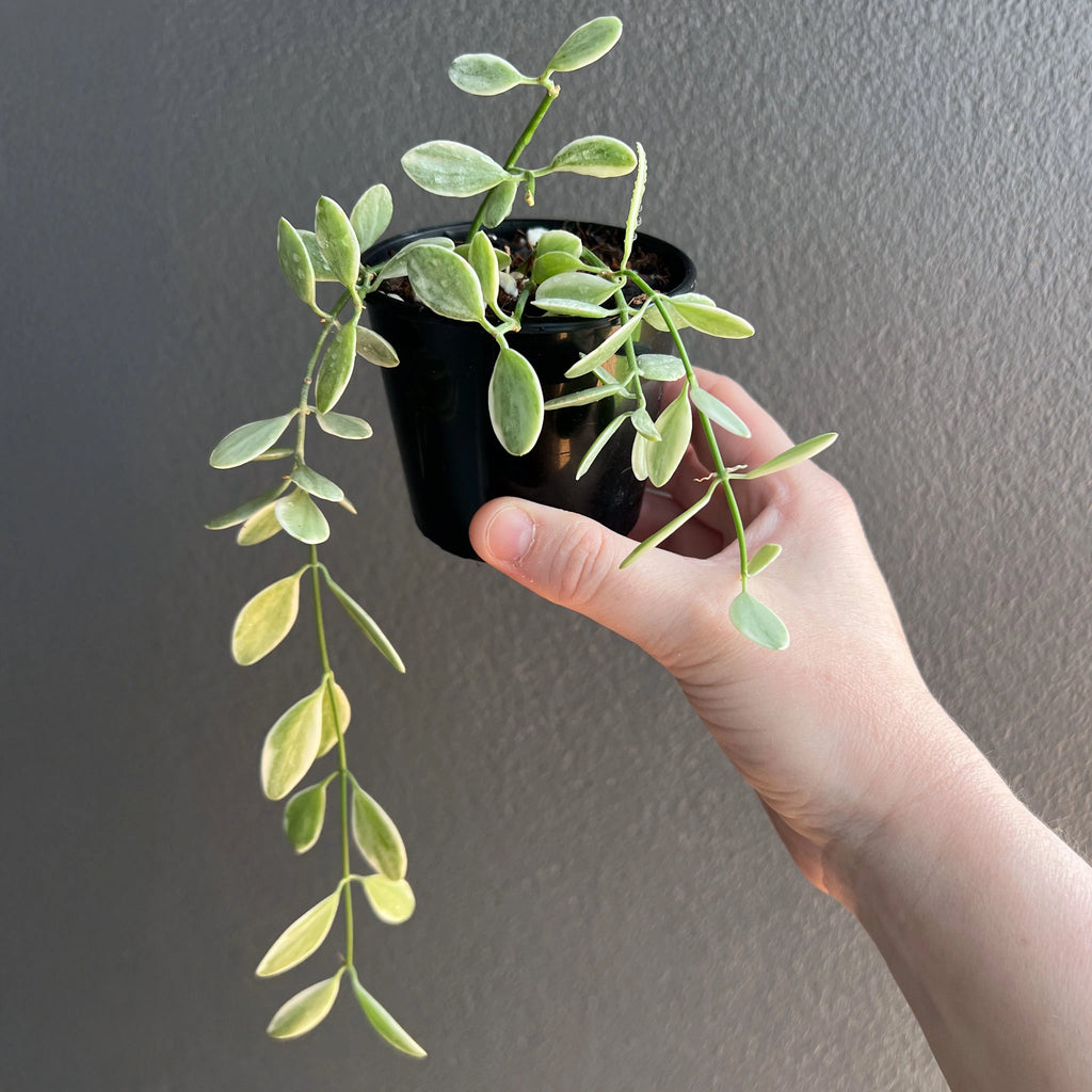 Dischidia oiantha variegata is a compact trailing plant with slender stems that weave and cascade beautifully, making it perfect for hanging baskets, plant stands, or cabinet displays. The leaves are small, smooth, and oval shaped with a striking variegation pattern. Each leaf has a soft green base edged in creamy white or pale yellow, giving the plant a bright, decorative look even in shaded spots. Over time, the vines grow long and elegant, forming a full curtain of foliage. This variety is low maintenance and thrives indoors in Australia, especially in warm, humid conditions with bright filtered light.