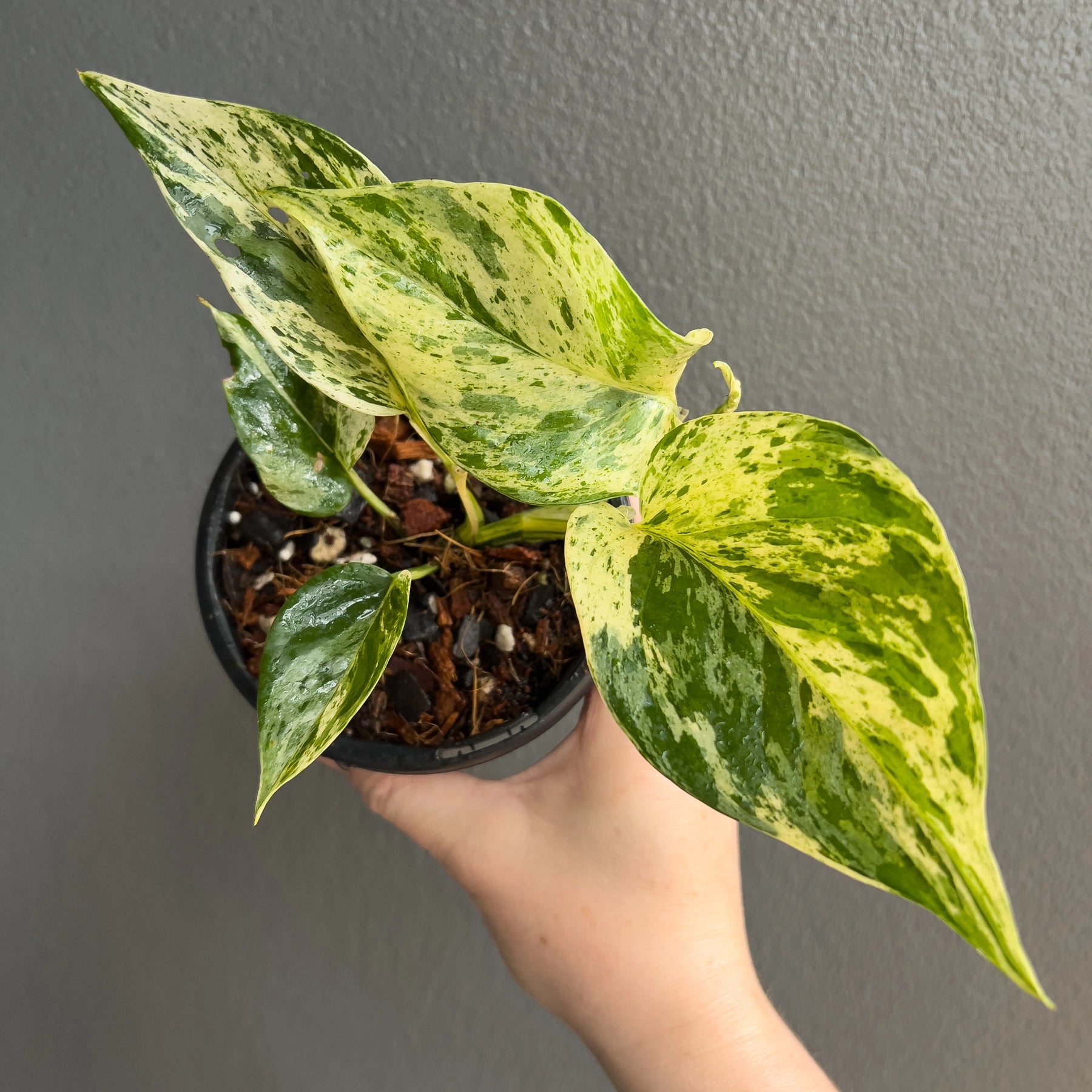 Water: Allow the top few cm of soil to dry out before watering. Water thoroughly, ensuring good drainage. Epipremnums are prone to root rot if left sitting in water, so avoid overwatering.