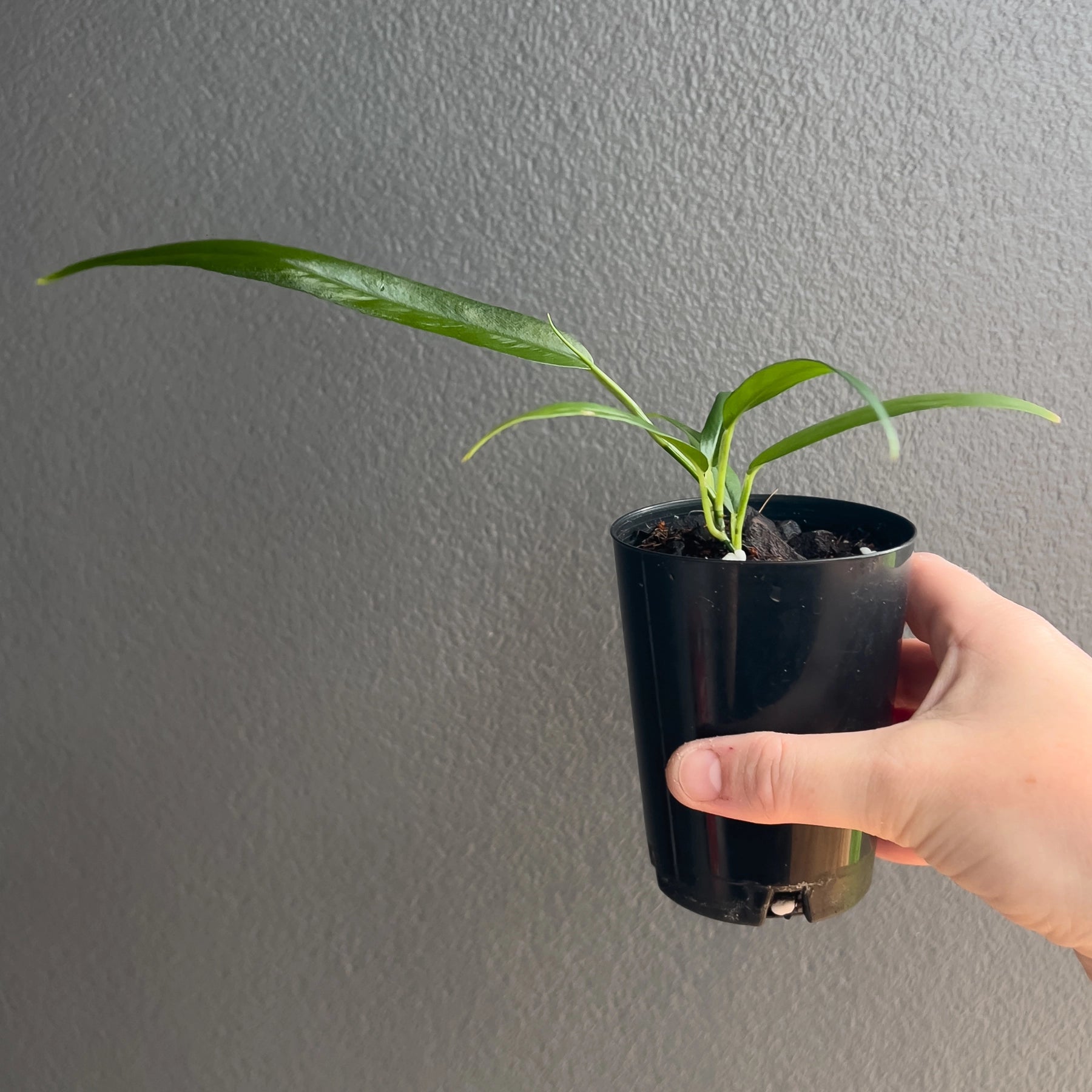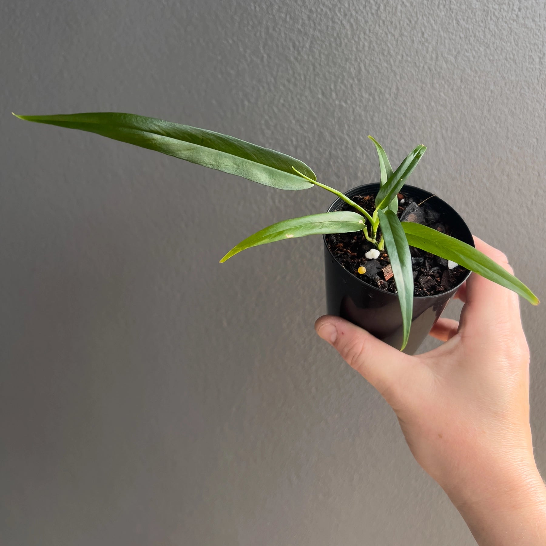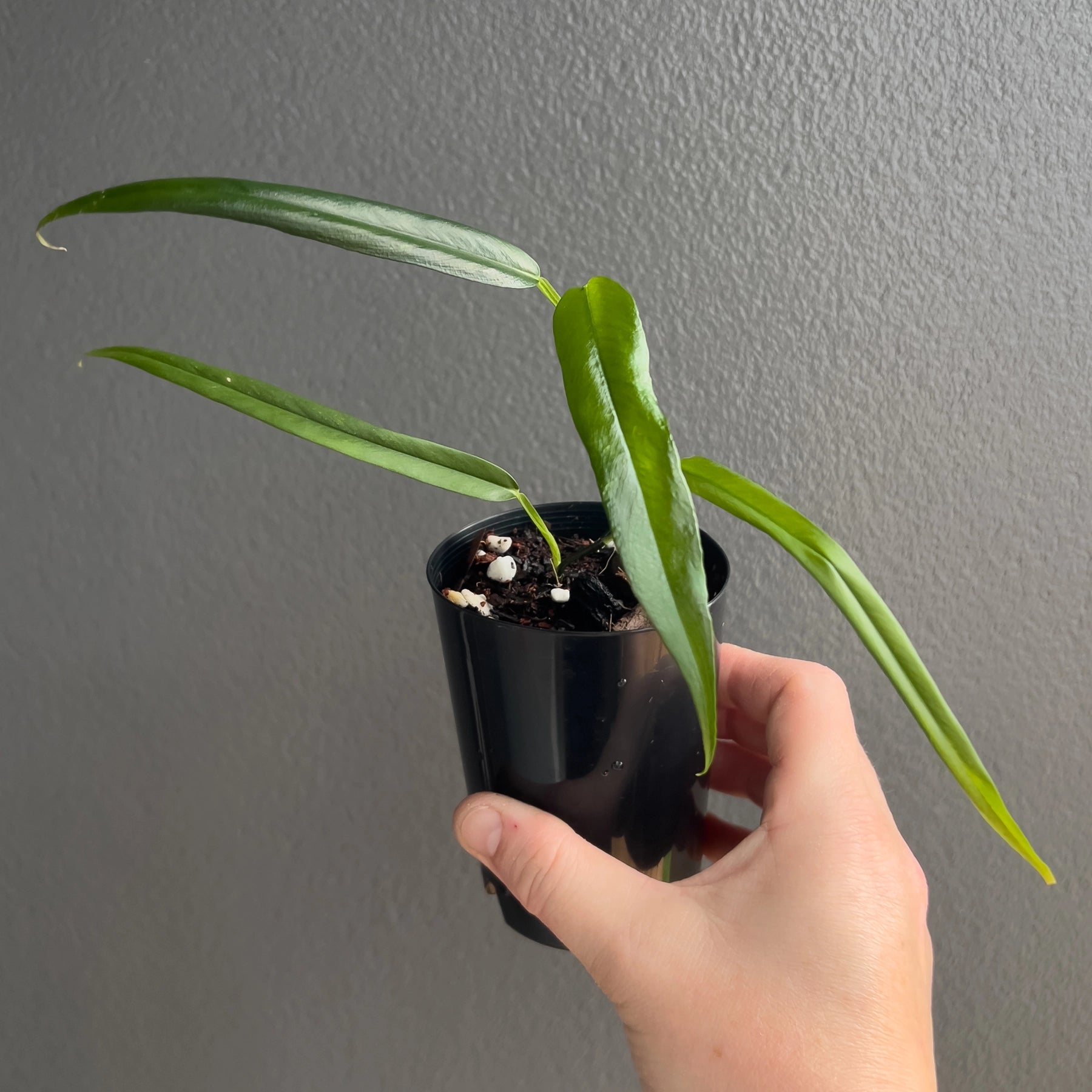 Philodendron chinchamayense is a rare climbing aroid, prized for its stunning, elongated leaves with deep green hues. This collector's plant thrives in bright, indirect light and prefers high humidity. It grows best with a support moss pole or trellis to showcase its climbing nature. A must-have for any indoor plant enthusiast, it adds a tropical touch to your space.