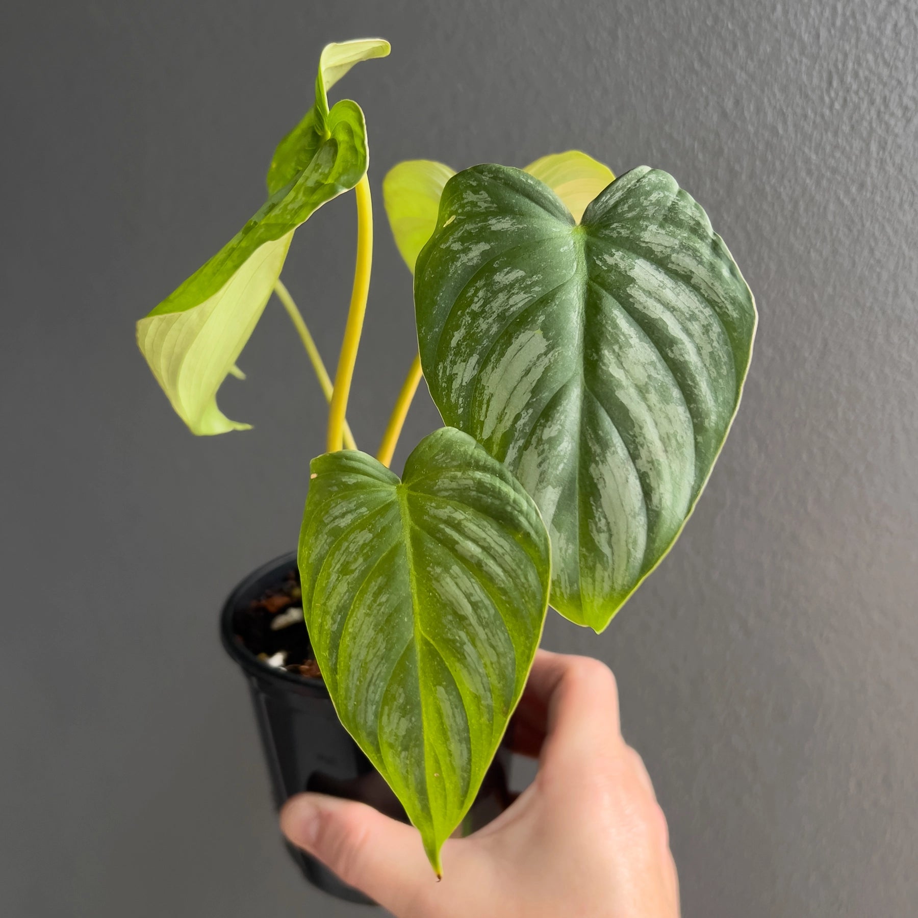 The Philodendron mamei x Philodendron McDowell plants are an exciting hybrid with a diverse genetic makeup, resulting in interesting features. They inherit robustness and adaptability from their seed parent, Philodendron Dean McDowell, enabling them to tolerate some sun exposure and withstand drought. The foliage takes after the pollen parent, Philodendron mamei, displaying intricate textures and silver markings with corrugated and wavy leaves. As they grow, the Philodendron mamei x Philodendron McDowell, which are seed-grown in our nursery, develop a crawling habit, but as juveniles, they exhibit climbing tendencies. These Philodendron mamei x Philodendron McDowell hybrids are a fascinating addition to indoor plant collections.