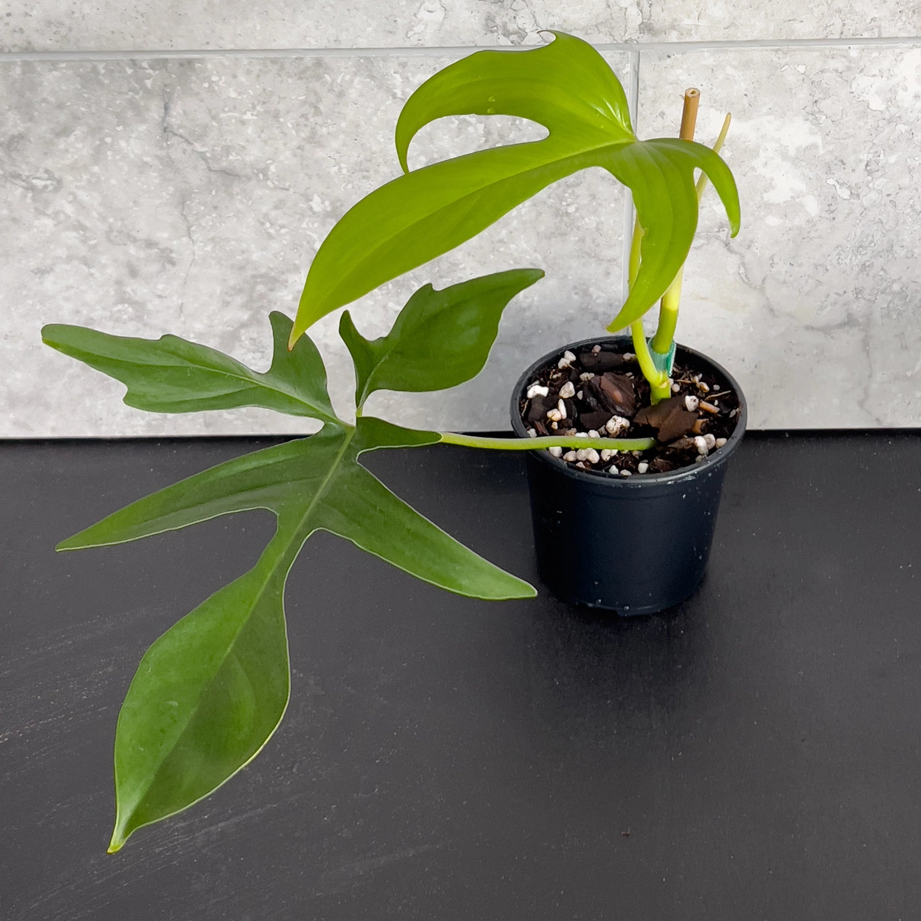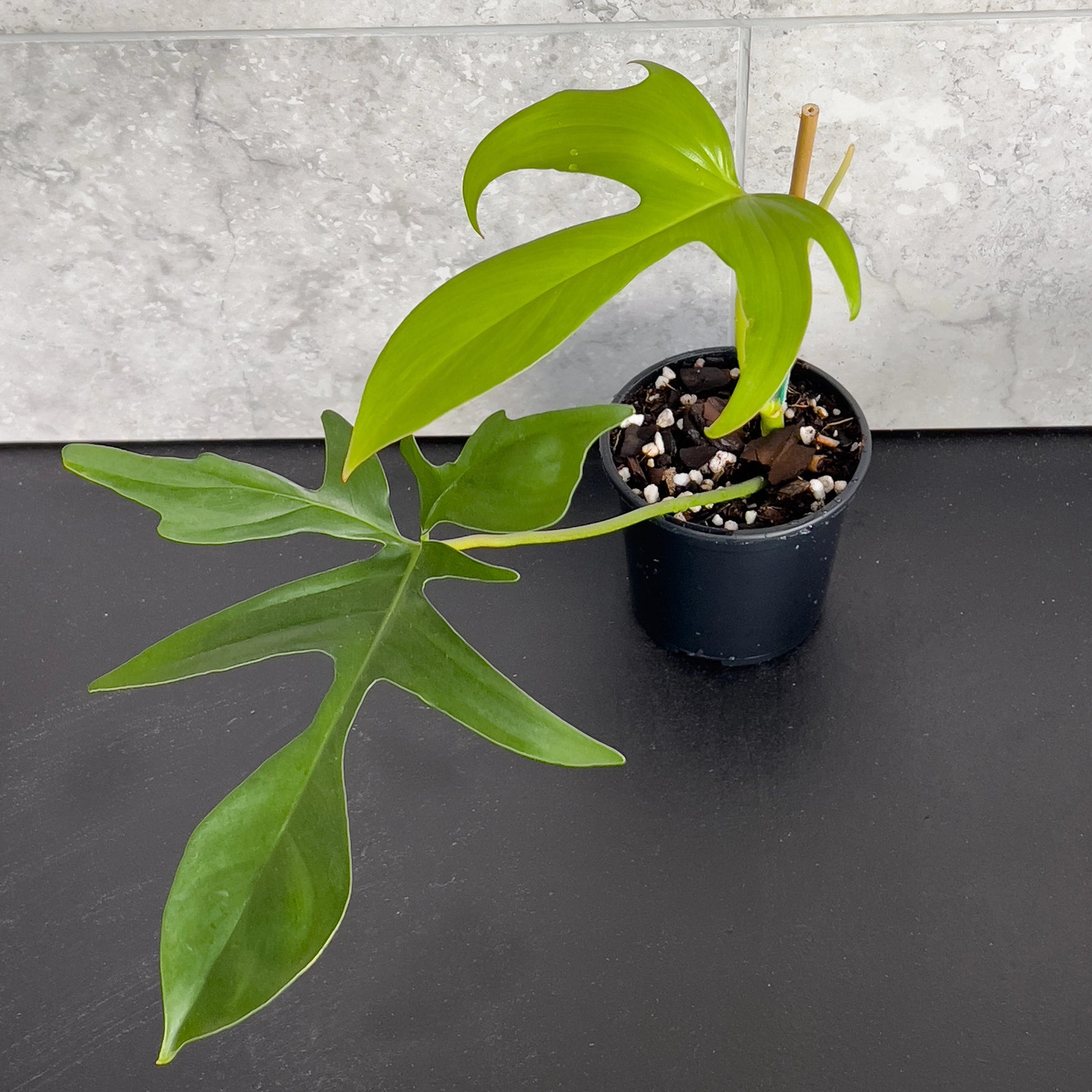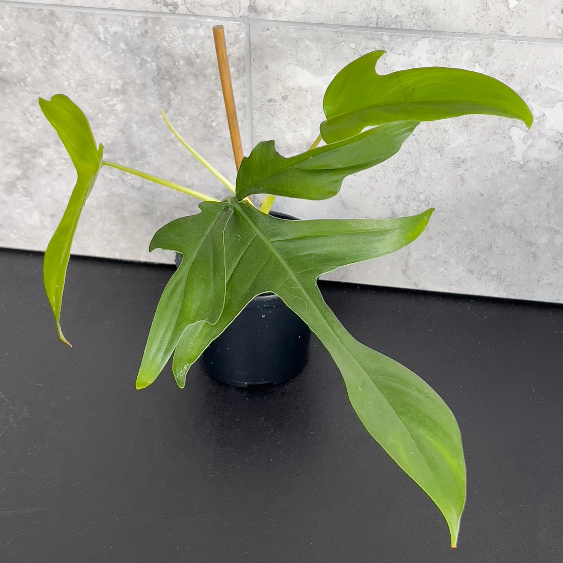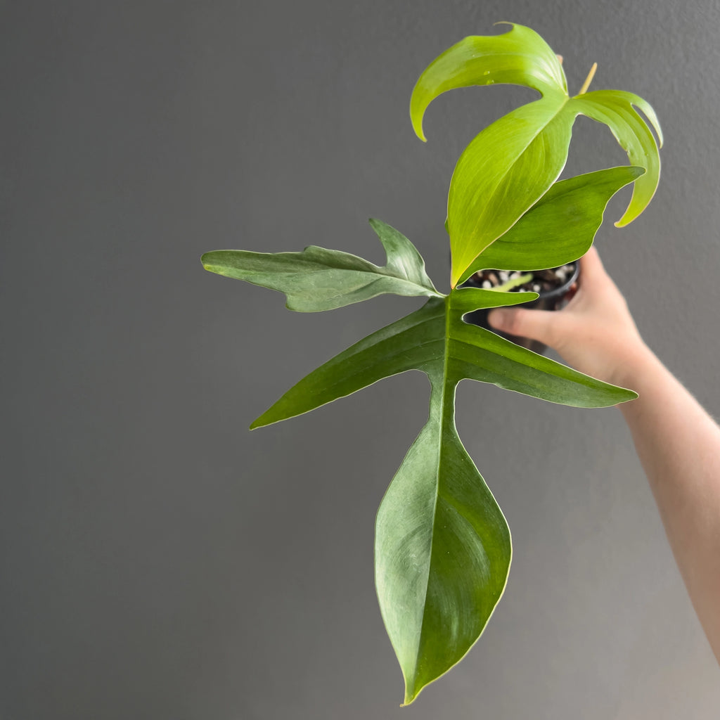 Philodendron pedatum 'Glad Hands', also known as Philodendron quercifolium, is a striking climbing species with deeply lobed, oak-like leaves that become more defined as the plant matures. The foliage starts out smaller and more simple in shape before developing elongated, finger-like lobes that give it a unique, sculptural appearance. The leaves are a deep green with a slightly glossy surface, and the plant thrives when given support to climb, producing increasingly larger foliage over time. With its vining growth habit and distinctive leaf form, Philodendron pedatum 'Glad Hands' makes an eye-catching addition to any indoor plant collection.